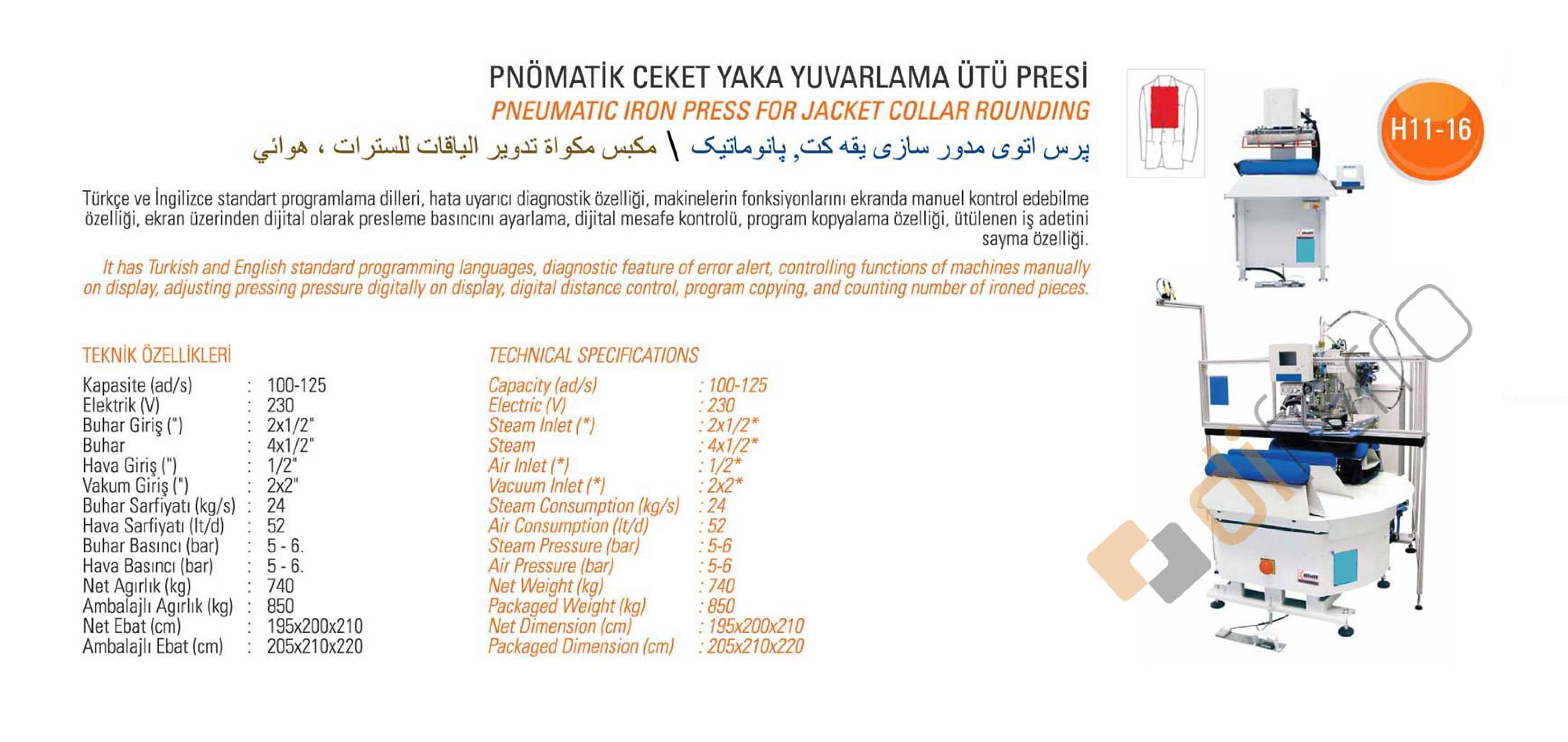 Türkçe ve İngilizce standart programlama dilleri, hata uyarıcı diagnostik özelliği, makinelerin fonksiyonlarını ekranda manuel kontrol edebilme özelliği, ekran üzerinden dijital olarak presleme basıncını ayarlama, dijital mesafe kontrolü, program kopyalama özelliği, ütülenen iş adetini sayma özelliği.