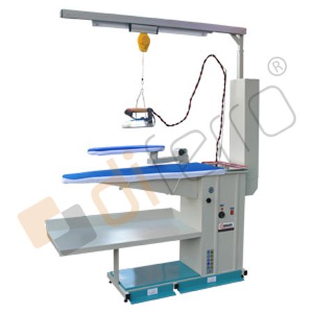 Genelde Kurutemizleme için tasarlanmıştır. Üfleme özelliği sayesinde kadife, kaşeli gibi ütülenecek ürünlerin parlamamasını sağlar. Bacalı olduğundan vakum havasını yere vermez ve yerdeki tozları kaldırmaz. Balanser sayesinde kolunuz yorulmaz ve rahat ütüleme yapabilirsiniz. Üst tabla, ısıtma ,vakum ve üfleme özelliği ile donatılmıştır. Kol aparatı sayesinde ceket kol gibi yerleri daha iyi ütüleme sağlar